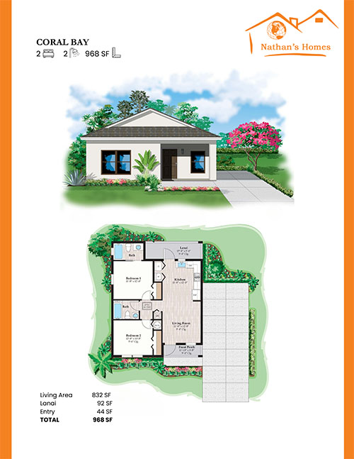 Coral Bay 2BR | 2B | 2 Car Garage | LA 832 SQF | Total Area 968 SQF Click for Larger Image Project navigationPreviousPrevious project:2 BR Seabreeze RetreatNextNext project:2 BR Sunset Key
