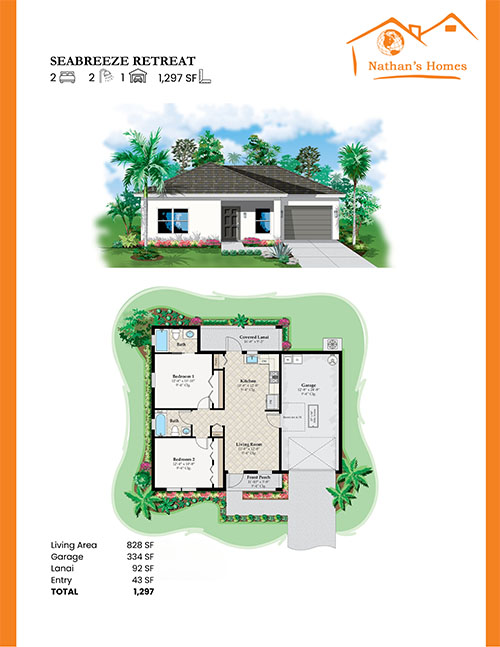 Seabreeze Retreat 2BR | 2B | 1 Car Garage | LA 828 SQF | Total Area 1297 SQF Click for Larger Image Project navigationPreviousPrevious project:Duplex – PoseidonNextNext project:2 BR Coral Bay