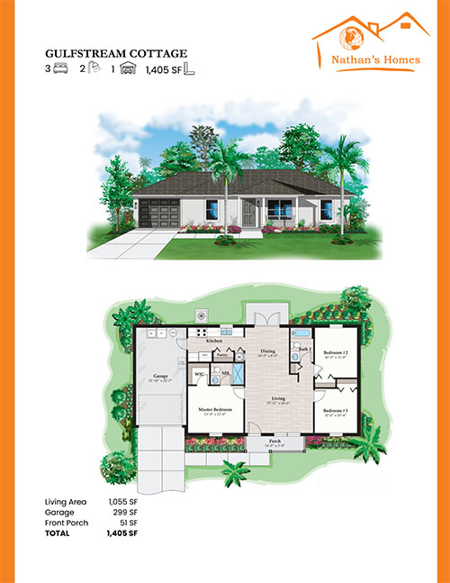 Gulfstream Cottage 3BR | 2B | 1 Car Garage | Living Area 1055 SF | Total Area 1405 SF Click for Larger Image Project navigationPreviousPrevious project:3 BR MagnoliaNextNext project:3 BR Levinson